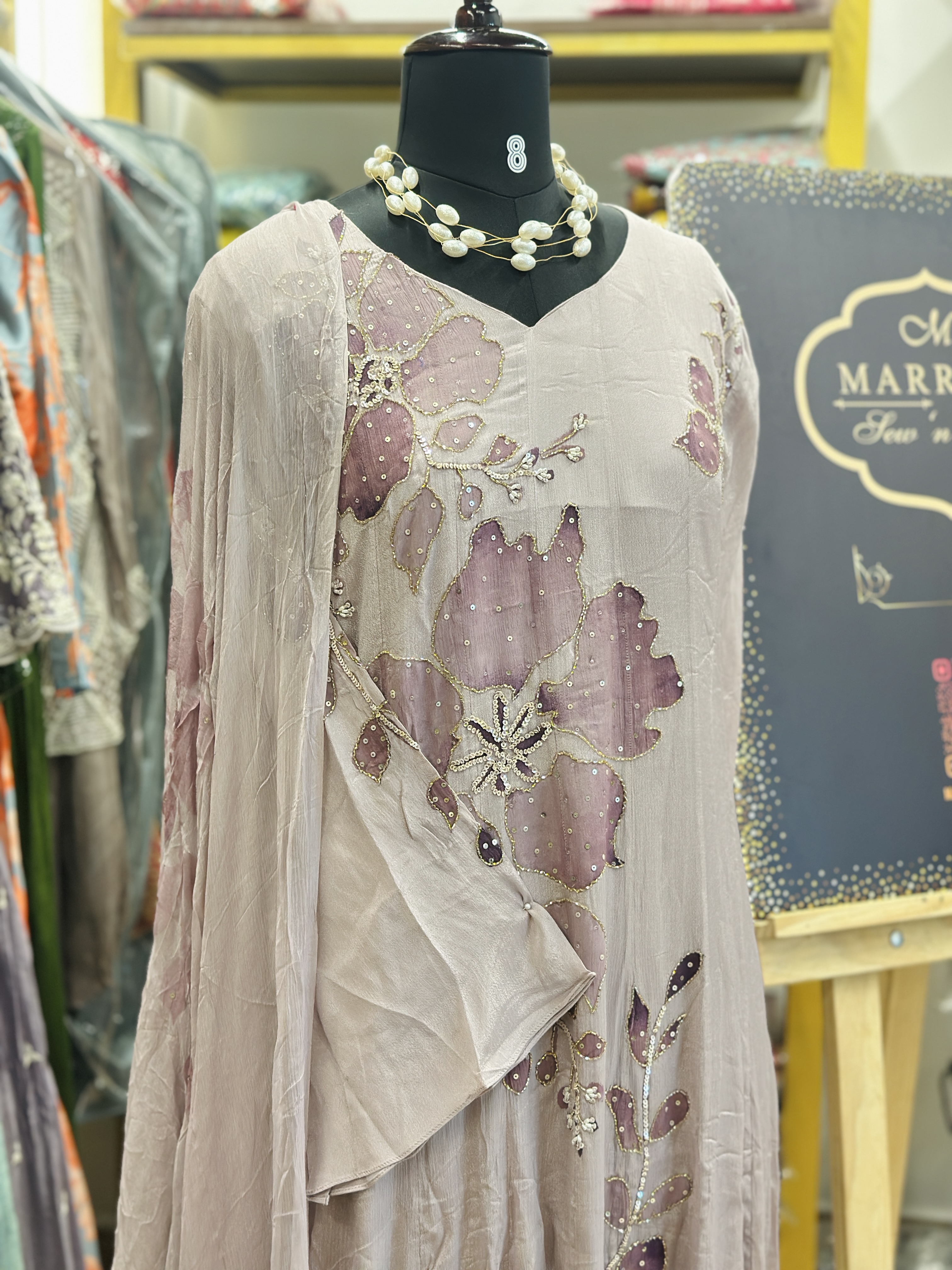 Chinon silk panel cut party wear suit