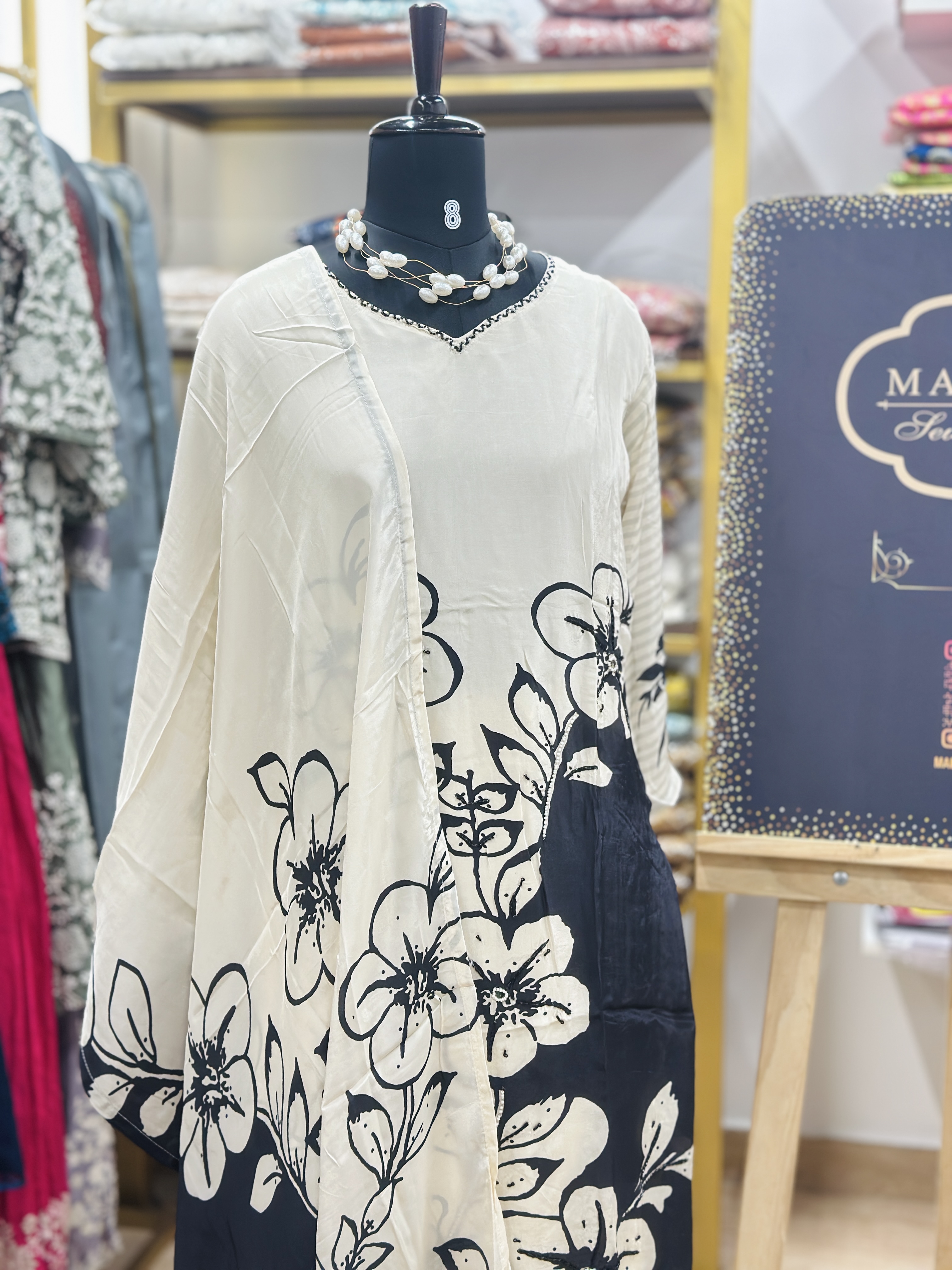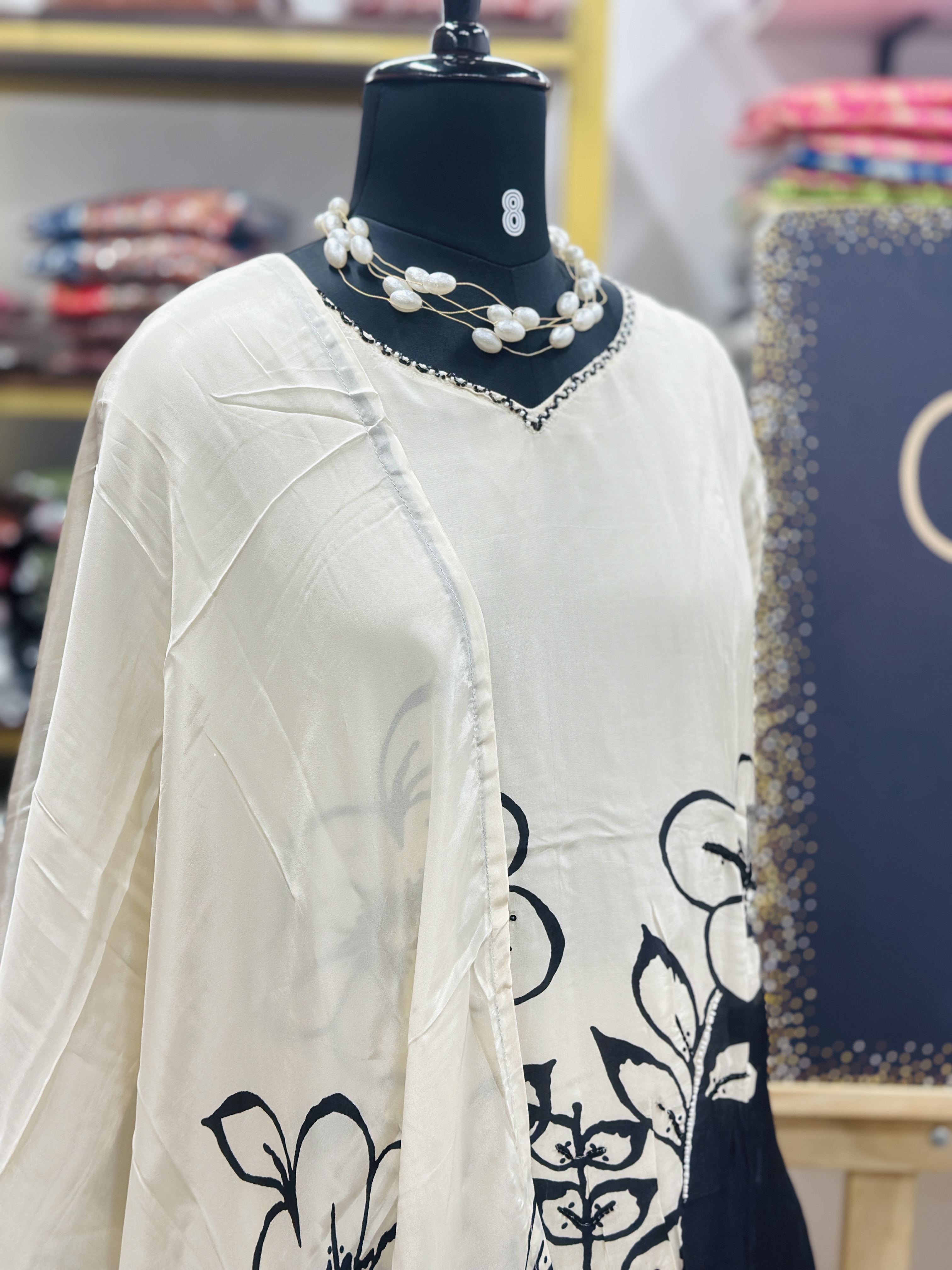 Top - muslin crepe digital printed offwhite suit