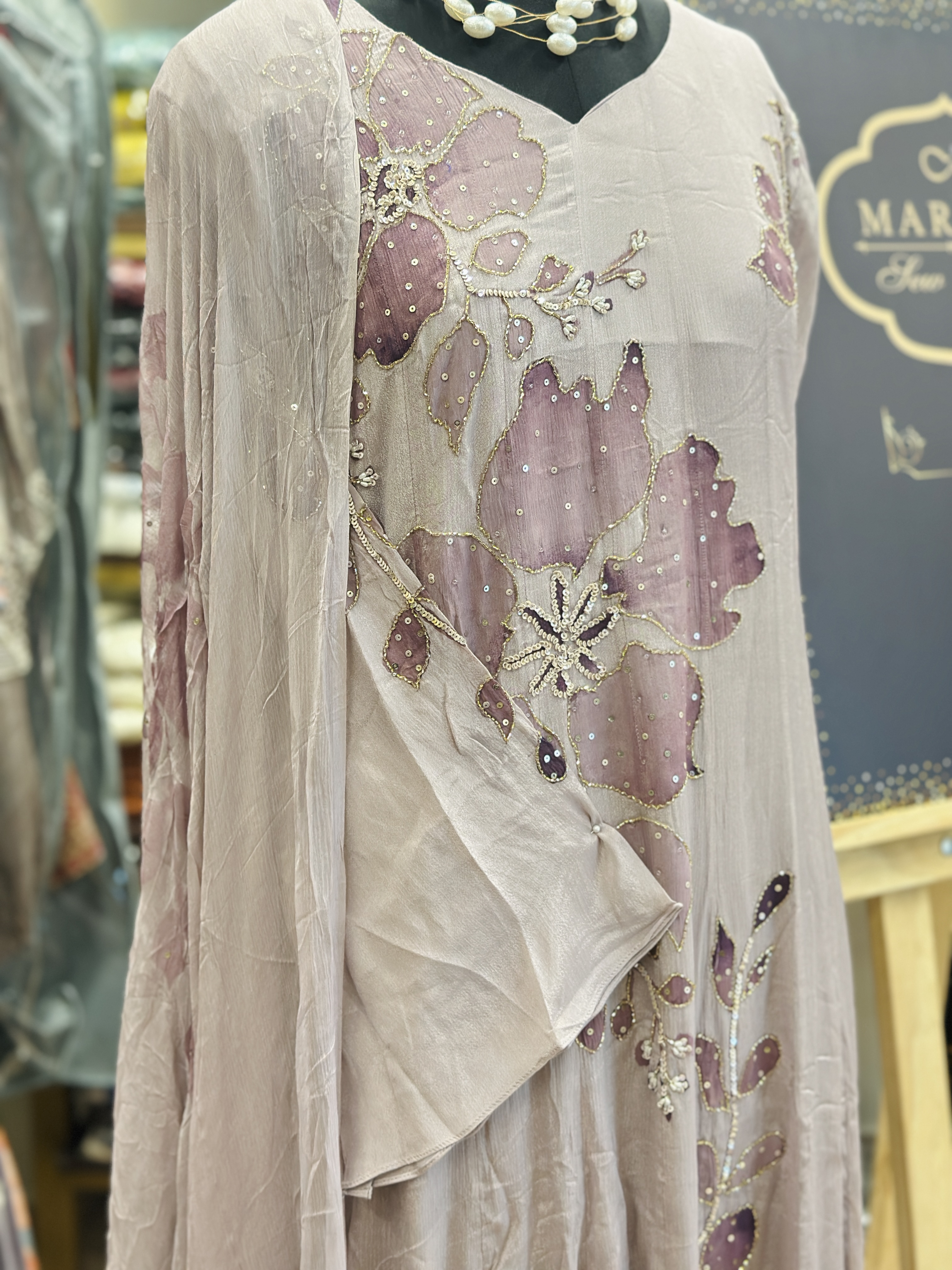 Chinon silk panel cut party wear suit
