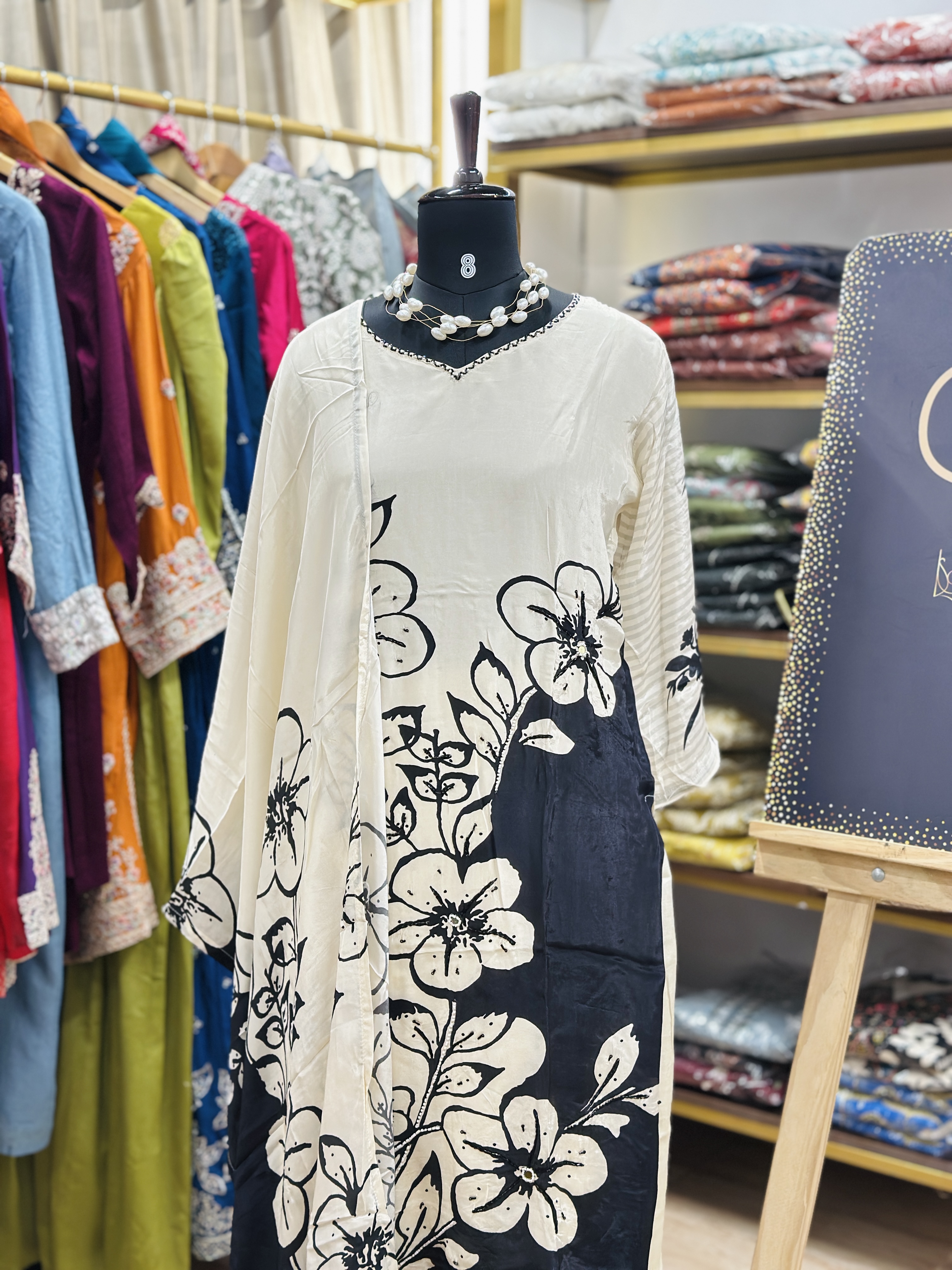 Top - muslin crepe digital printed offwhite suit